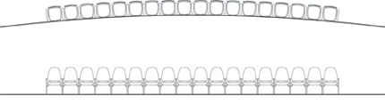 The final goal for the campus size is to hold 2,000 full-time students, as well as accommodate the required faculty and staff. Classroom spaces require 22 square feet per student, a total of 44,000 SF, to house the anticipated student body. In addition, ten percent of this area should be added as circulation space within the buildings, coming to a final area of 48,400 SF. It is estimated that there will be a total enrollment of about 500 students when the university first opens: therefore, the required classroom spaces would need to total 11,000 SF. To meet requirements for circulation space the total area would need to be 12,100 SF. Lecture halls, or auditoriums, require only 15 square feet per student. The two proposed lecture halls for this new university each hold approximately 300 students. |