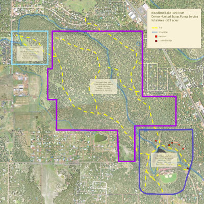 The Woodland Lake Park Tract is comprised of three sections. The Big Springs Environmental Study Area (40 acres), granted a special use permit to the Blue Ridge School District which expires 12/31/2012. Woodland Lake Park (103 acres) granted special use permit to the Town of Pinetop-Lakeside which expires 12/31/2007. Through conversations with the USFS it was ascertained that the Woodland Lake Park special use permit will very likely be renewed at expiration. And the Woodland Lake Tract (440 acres), granted a special use permit to the Town of Pinetop-Lakeside which expired 12/31/1997. The special use permit will not be renewed.